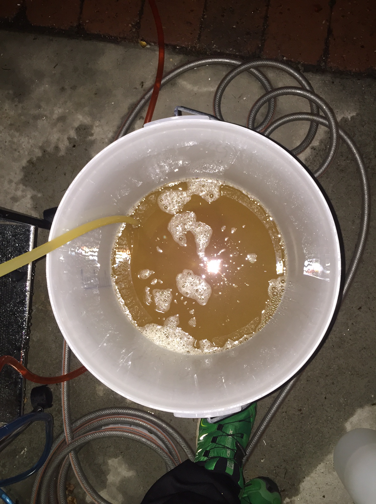 Med flaskinga unnagjort burde resten av prosessen vere plankekøyring, men den gang ei. IPA er eit øl som kjenneteiknast av mykje smak, og det som lager smaken er mykje humle. Dette er eit problem for filteret på Grainfatheren. Dette har ein tendens til å tette seg, og allereie etter 5 minutt rann det sakte.